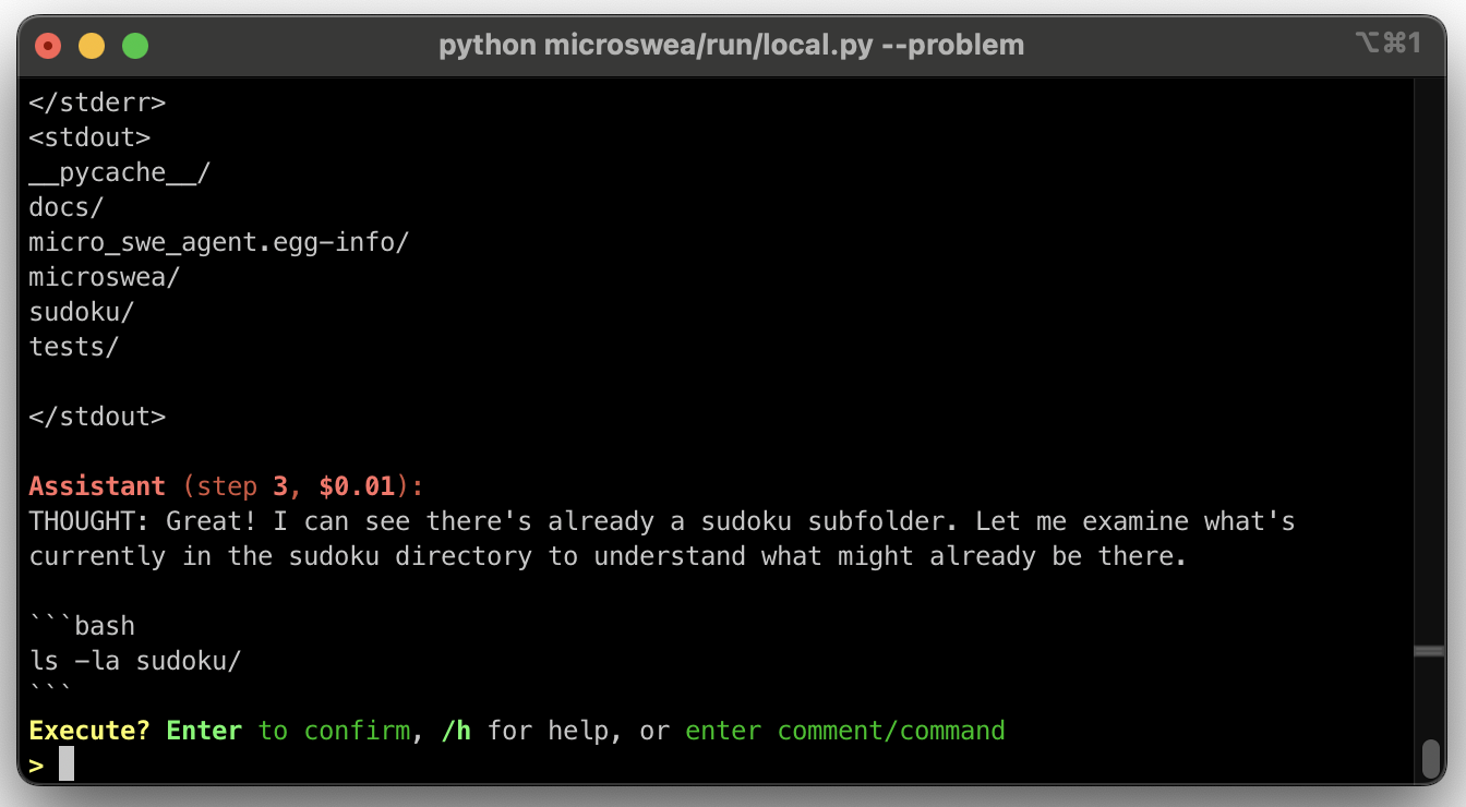 parse_action). You don't need this if you use the tool calling functionality of your LM if it supports it, but this is more provider-specific, so we wo'nt cover it in this guide for now (don't worry, the performance should not be impacted by this). - Executing the action (very simple, in our case we will simply execute any action of the LM as a bash-command in the terminal).